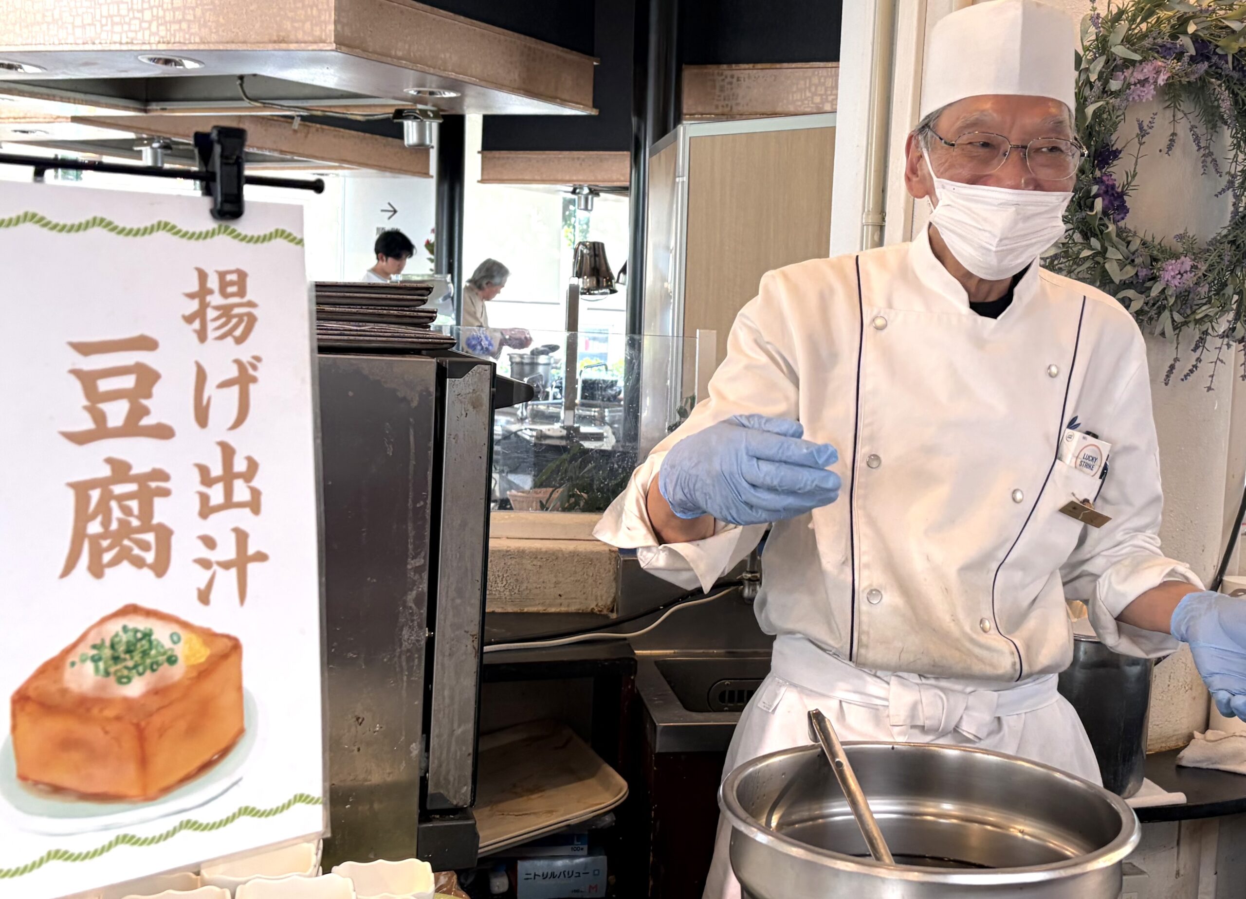 揚げ出し豆腐を揚げてくださるお父さん